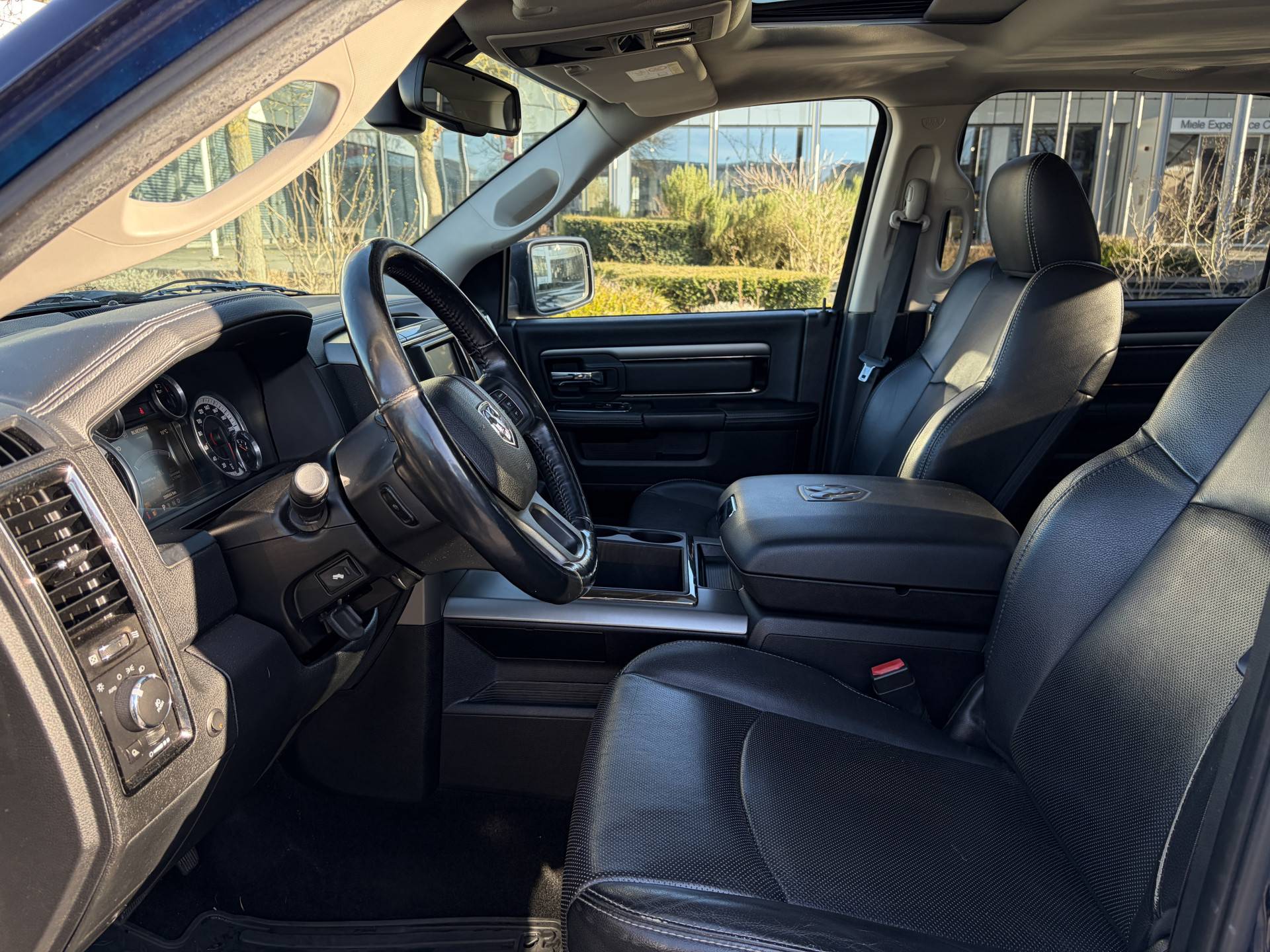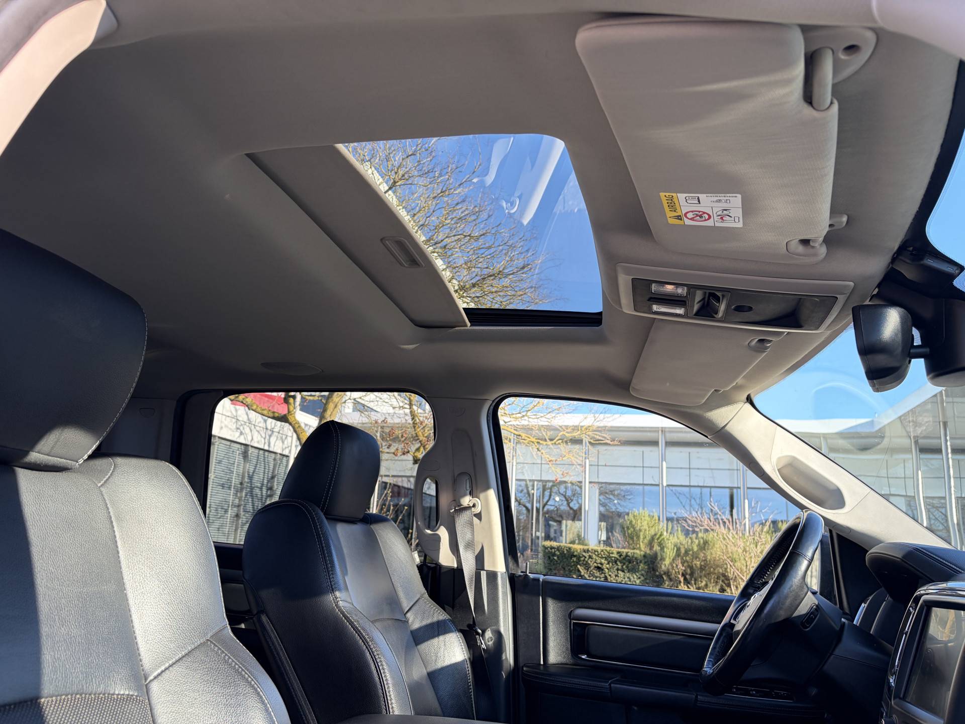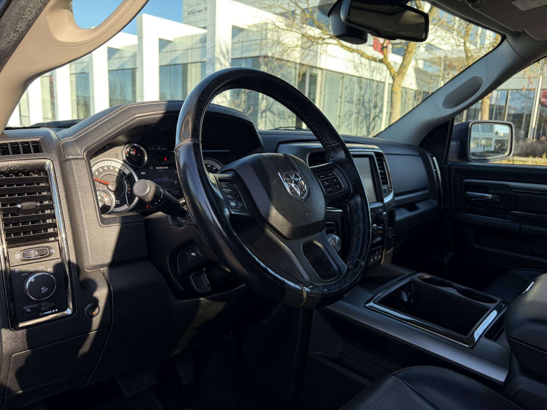 Deze Dodge Ram 1500 maakt een voortreffelijke indruk. Hiermee mag je gezien worden in de stad én op de weg! De aandrijving komt voor rekening van een benzinemotor en een automatische transmissie. En o ja, het lederen interieur is ook een vermelding waard! U zult absoluut de luxe waarderen van de stoelverwarming, verwarmbare achterbank, en het verwarmbare stuur dat inbegrepen is in dit voertuig. Ook 20 inch lichtmetalen velgen, LED-dagrijverlichting, trailer assistent, in delen neerklapbare achterbank, LED-achterlichten en verstelbare lendensteunen zijn aan boord.